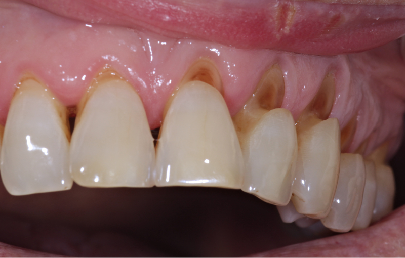 - 牙齦逐漸後退