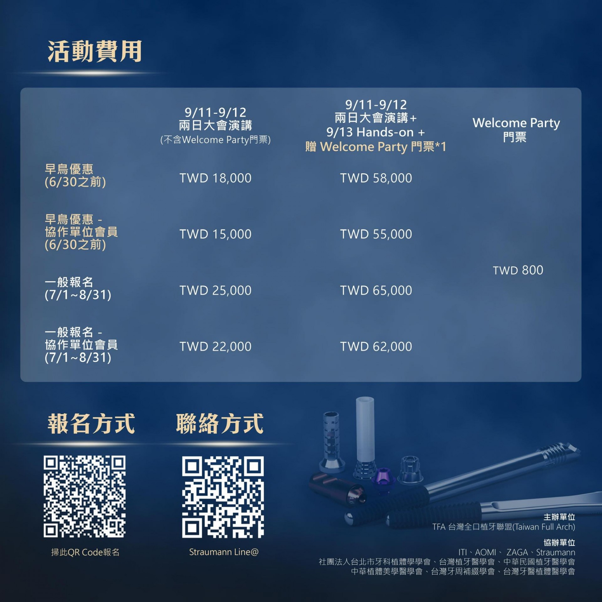✦ 主辦單位: TFA 台灣全口植牙聯盟(Taiwan Full Arch)